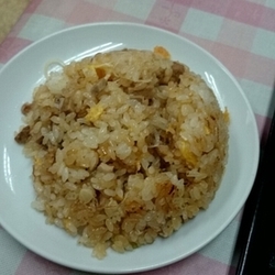 見た目は小ぶりながらしっかり固めてあり、ほぐすと意外に量多めのチャーハン。
